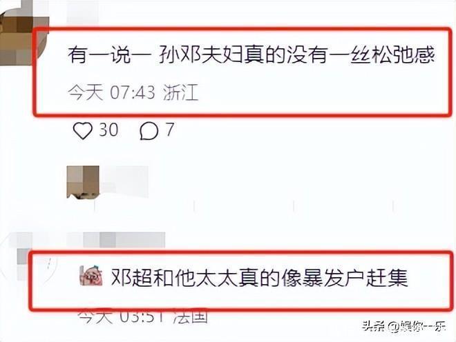 正因为如此,被网友纷纷嘲讽“孙邓夫妇真的没有一丝松弛感!”像暴发户赶集“”不是那个阶层,就别硬上“说得像是邓超和孙俪用力过稳,硬挤贵族阶层的样子。