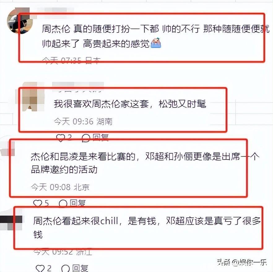 网友看了纷纷夸赞”周杰伦和昆凌是来看比赛的,而邓超和孙丽更像是出席活动。“周杰伦随便打扮一下都帅到不行!”等。